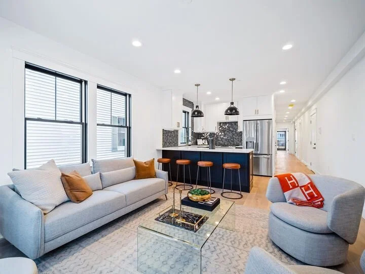 Spacious living rooms allow you and your loved ones to spread out and take full advantage of the extra space. To cultivate the ultimate space, opt for charming seating solutions that will help to promote great conversation. To keep your room from feeling too spread out or too one-sided, create multiple seating options for you and your guests. Having two prominent seating areas instead of one is a great way to encourage separate conversations in a more congenial atmosphere. You can also include chic ottomans, poufs, or benches for additional seating options that double as great decor accents.